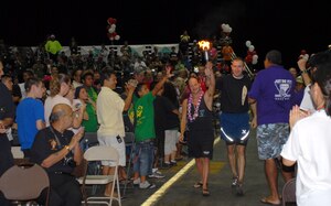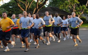 Charlie Flight, 15 SFS, began their shift under a different tune this past Valentine's Day, when an ensemble from the Honolulu Blend Show Chorus came on base to present a "singing Valentine" to their shift supervisor, MSgt John Havrilla. Mrs. Havrilla was thrilled to have her husband receive such a