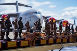 Volunteers hand out glow sticks and bracelets to Airmen and their families at the Sexual Assault Awareness and Prevention Month glow run at Joint Base Pearl Harbor-Hickam, Hawaii, April 1, 2022. The theme of SAAPM this year is a call to action for individuals at all levels of the Department of