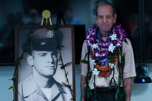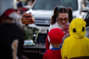 Capt. Skyler Kamaka, 203d Air Refueling Squadron pilot, talks with Air Force Reserve Officer Training Corps Cadet Fourth Class Nicole McGregor, Detachment 175, during career day at the University of Hawaii at Mānoa, Hawaii, Oct. 22, 2021. Air Force officers from across Oahu visited with AFROTC