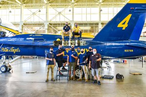 Sadie, Assistance Dogs of Hawaii therapy dog, receives attention from a 15th Wing Medical Group airman during a therapy dog visit at Joint Base Pearl Harbor-Hickam, Hawaii, Feb. 19, 2021. Assistance Dogs of Hawaii is an organization based on Maui, offering support to people with disabilities so they