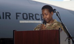 Two parking chocks sit on display during the North Korea Aircraft Commemorative Plaque Ceremony on Joint Base Pearl Harbor-Hickam, Hawaii, March 12, 2019. In 2018, two C-17 Globemaster IIIs, tail numbers 05-5147 and 05-5148, carried the remains of 55 American soldiers killed in the Korean War.