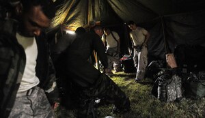 Senior Airman Korina Myers, loadmaster assigned to the 535th Airlift Squadron, secures cargo straps on a C-17 Globemaster III during Exercise TROPIC THUNDER 2017 (XTT17), Joint Base Pearl Harbor-Hickam, Hawaii, April 19,2017. XTT17 is a two part full spectrum readiness exercise hosted by the 15th