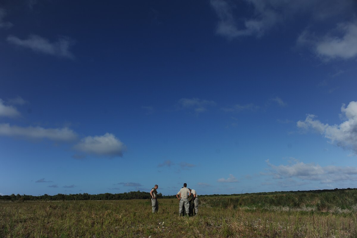 Senior Airman Daniel Allen, 647th Logistics Readiness Squadron combat mobility flight rigger from Joint Base Pearl Harbor Hickam, Hawaii, uses the “daisy chain” technique to field pack a parachute after it was used to drop a heavy equipment platform from a 15th Wing C-17 Globemaster III April 6 at the drop zone on Andersen Air Force Base, Guam, during a five-day mission to fly, execute airdrops, and foster joint service and international operability in the Pacific theater. During the mission, the aircrew dropped static-line personnel, heavy equipment platforms, high-velocity container delivery system bundles, low-velocity CDS bundles, and High-Altitude Low-Opening jumpers during their time in Guam. (U.S. Air Force photo by Staff Sgt. Nathan Allen)