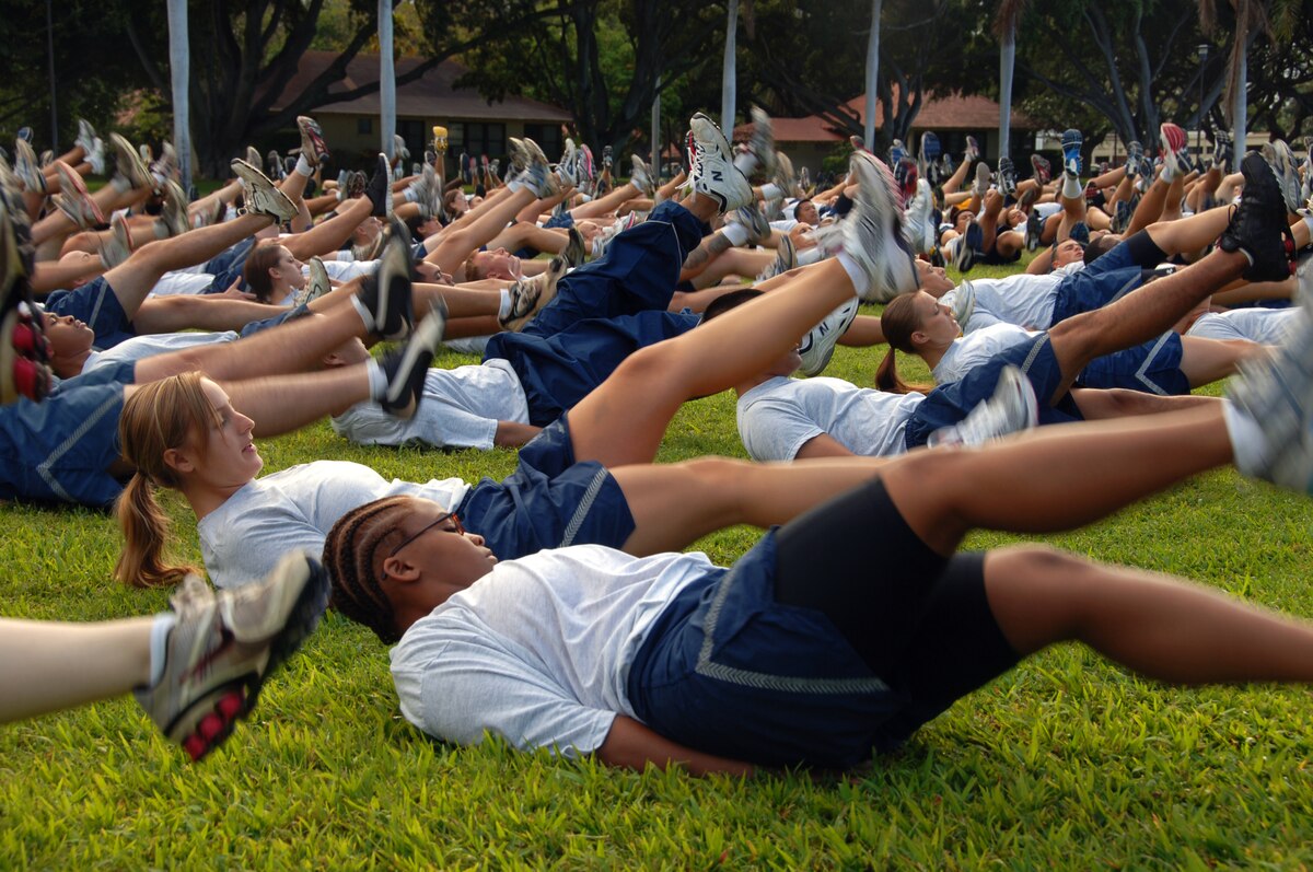 Senior Master Sgt. Terry Topouzoglou, 535th Airlift Squadron, bears the 15th Operations Group guidon at the "Warrior Run" May 7 at Joint Base Pearl Harbor Hickam, Hi. Participants were addressed by Col. Giovanni Tuck, 15th Airlift Wing Commander before beginning the run - Col. Tuck's last as 15th AW commander. (U.S. Air Force photo by Senior Airman Nathan Allen)