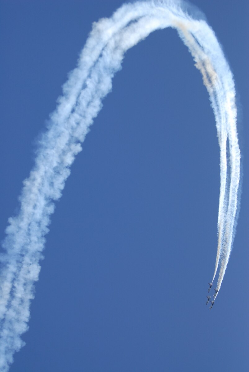 HICKAM AIR FORCE BASE, Hawaii -- Four Thunderbirds, U.S. Air Force Air Demonstration Squadron, perform combat maneuvers during the Open House, "Wings over the Pacific," here, Sep. 20. The Open House featured live band performances, static displays and The Thunderbirds demonstrated the capabilities of the F-16 Fighting Falcon. Over 99,000 people attended the two day event. (U.S. Air Force photo/Senior Airman Gustavo Gonzalez)